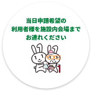 申請者さまを施設内の申請会場へお連れいただくことです!